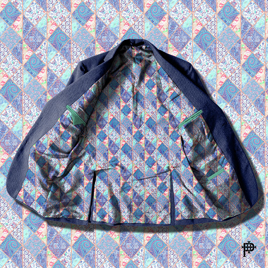 The Aura collection consists of a wide range of viscose and cupro or vegan silk fabrics, with prints and patterns conceptualised by us and produced in Como, Italy. Incredibly comfortable and breathable against the skin, with a delightfully luxurious feel and look, they are ideal for use as suit linings, shirting, or even as a dress or style accessories. Combining modern culture with traditional heritage, we have the right vibe to match your look.