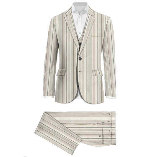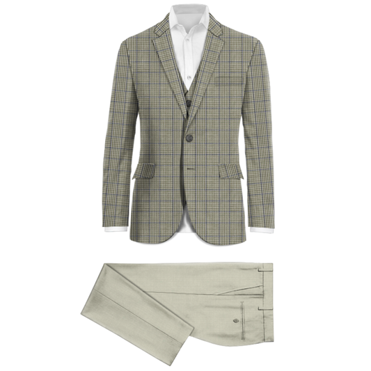 Our expanded range of linen fabrics feature light- to medium-weight options between 280 grams to 360 grams. Available in plain-coloured options as well as classic suiting patterns such as glen plaid, gunclub check, and mixed-width stripes, they are excellent both as formal suiting for equatorial climates, or seasonal wear.